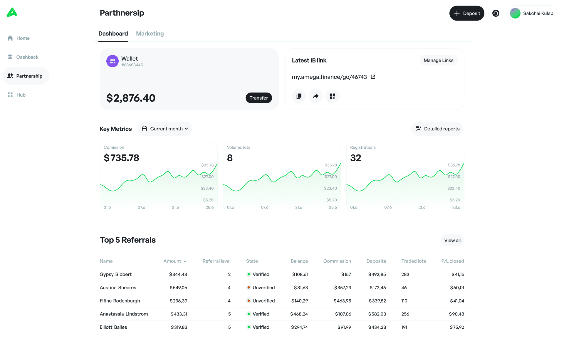A centralized fintech client area designed to simplify account management, improve trust, and reduce friction across trading, wallet, verification, and referral workflows.