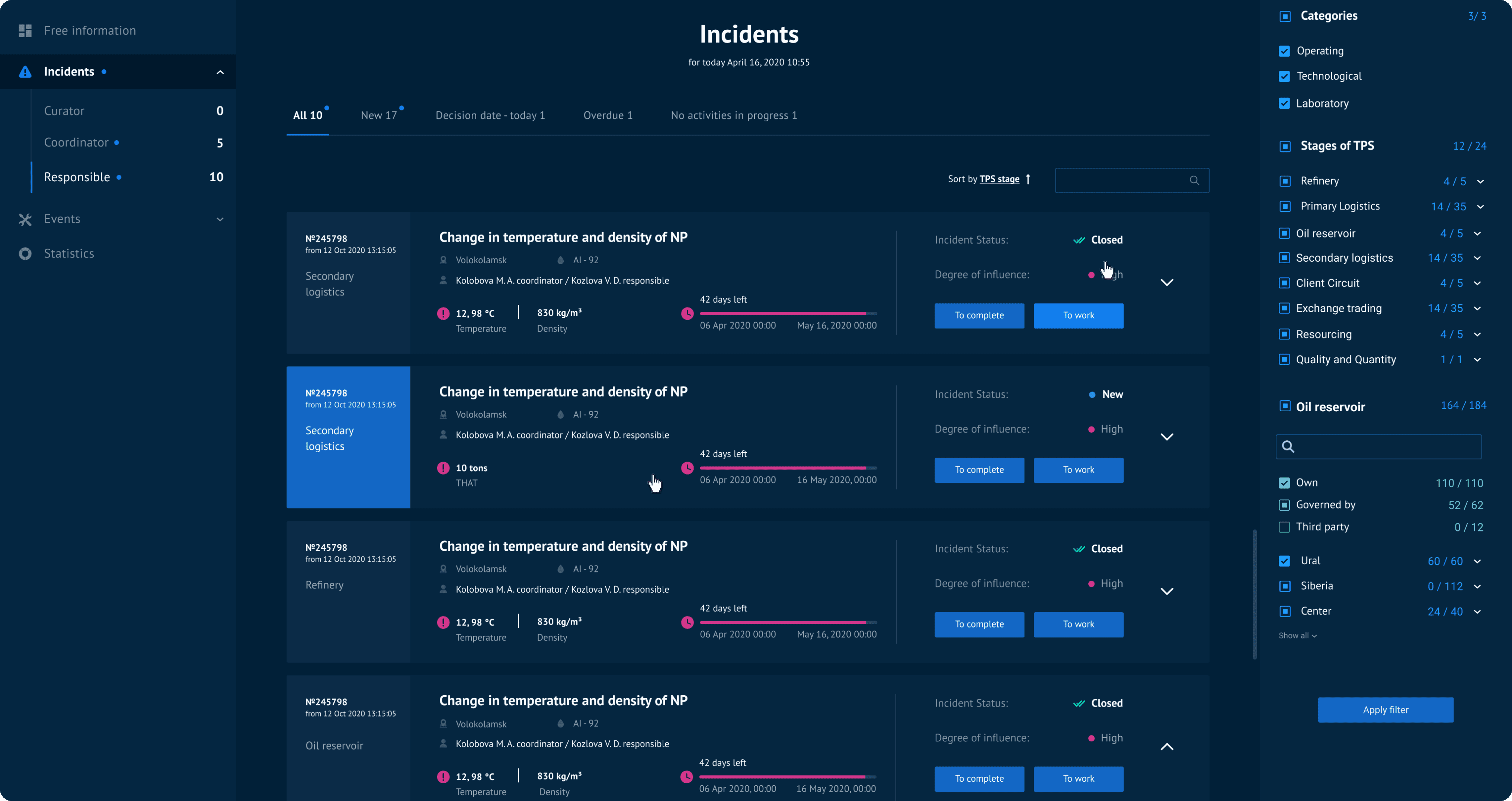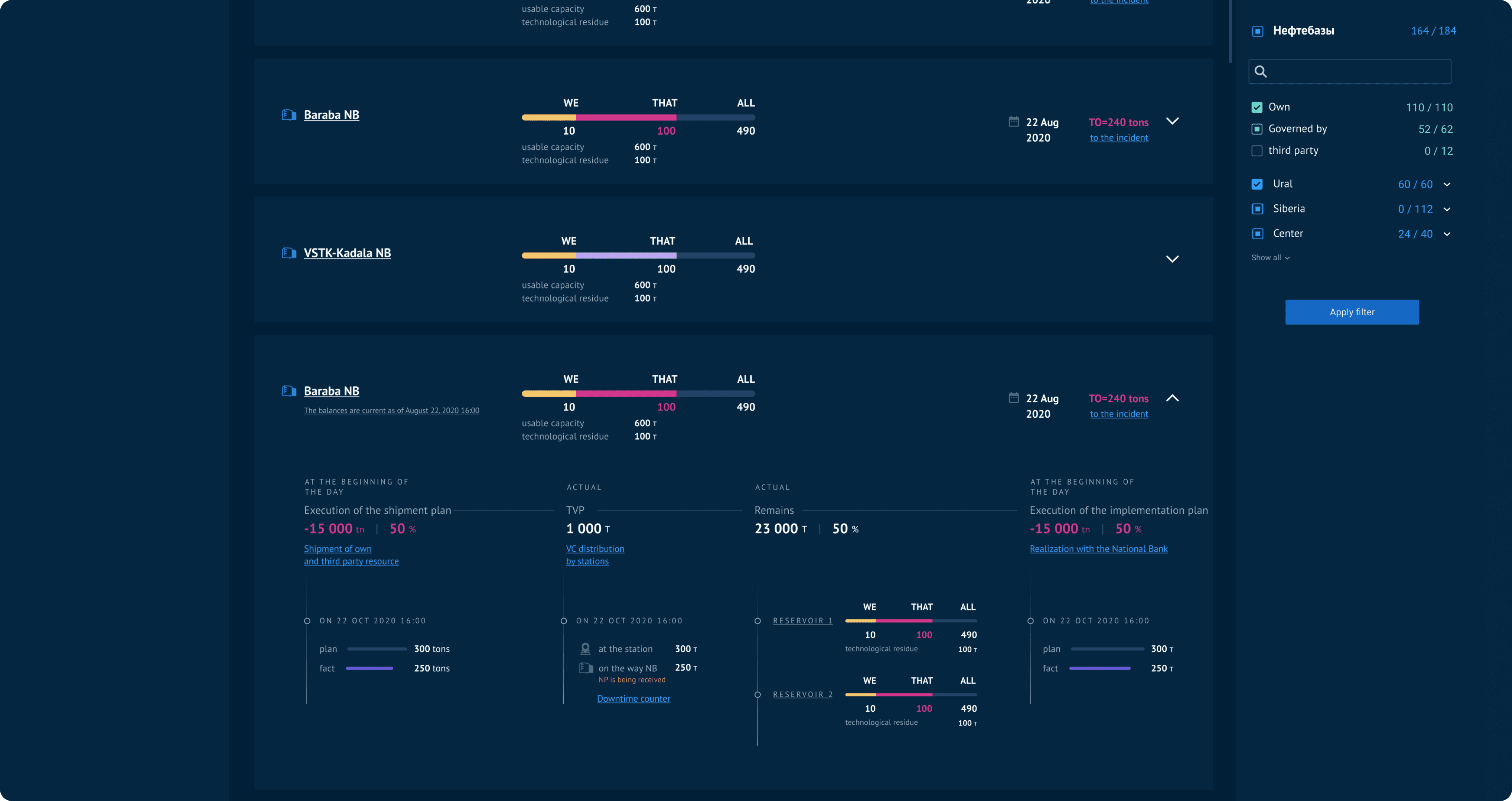 Reksoft is a ERP internal platform for logistics control and supply chain monitoring in the oil & gas industry. It is used by operators, logistics coordinators, and executives to track shipments, documents, and operational events across multiple systems.